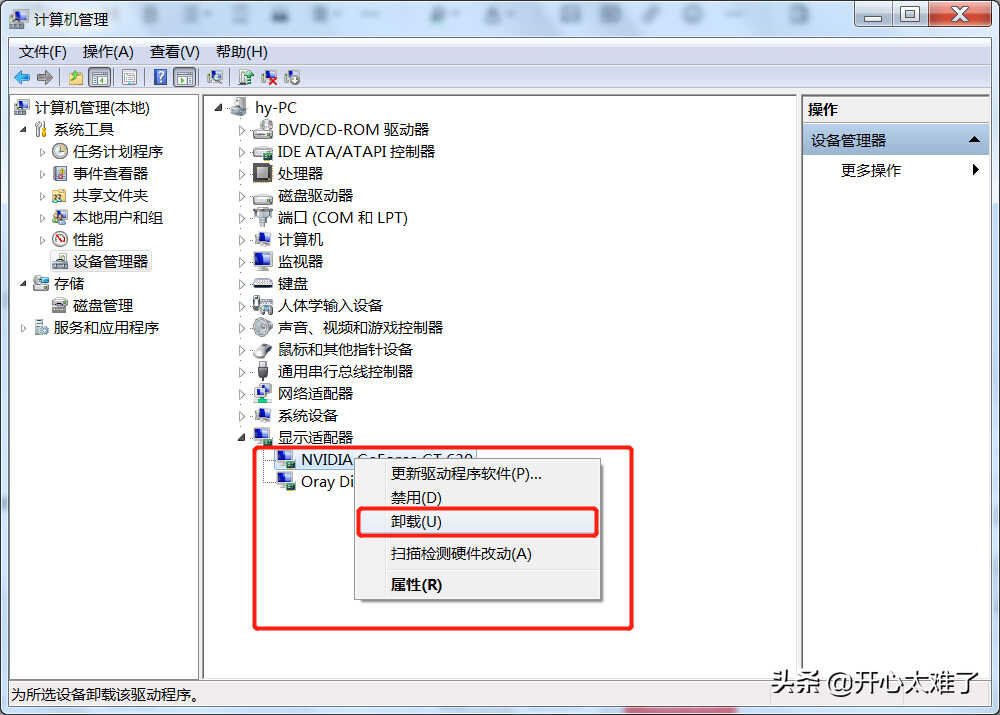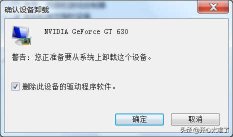 点击“确定”,卸载显卡驱动。其他有问题的设备也是这么卸载的。卸载有问题的设备以后,重新启动计算机,能正常开机以后,再次安装设备驱动即可。这个方法可以解决10%的电脑问题。