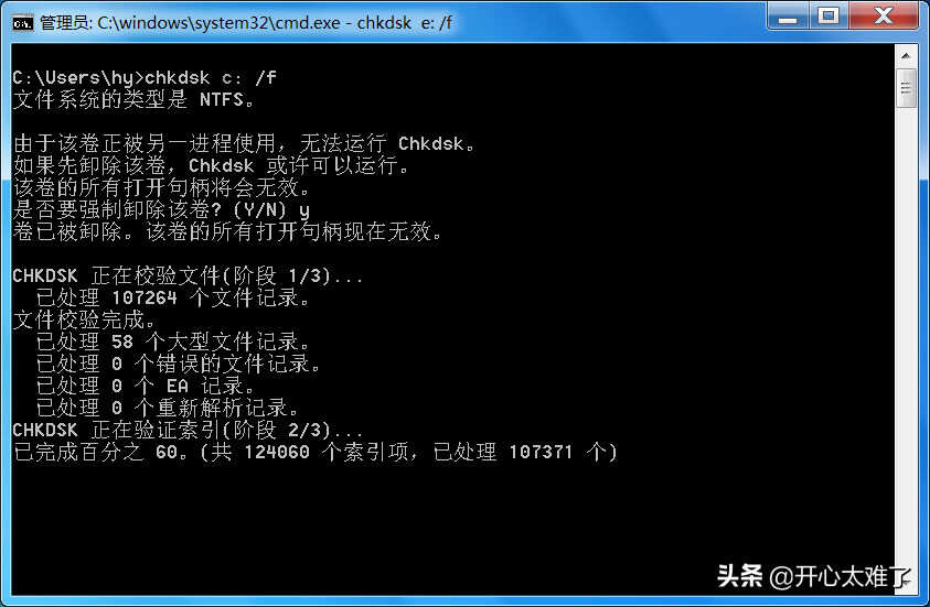 如果以上方法都没有解决问题,电脑开机仍然蓝屏,可能是电脑强制关机或者突然停电造成硬盘文件大量丢失或者是硬盘分区表损坏。这个时候要用到“CHKDSK.EXE”这个古老的DOS命令修复硬盘了。