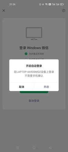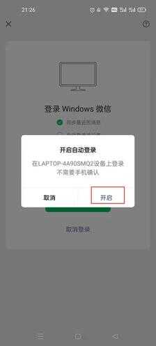 勾选后,就会弹出【开启自动登录】选项,选择【开启】,以后如果要在这台电脑上登微信,就可以直接登录,无需再在手机上确认一次了。