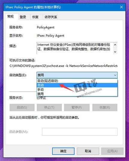 • 在服务中找到IPsec Policy Agent,双击打开其属性。