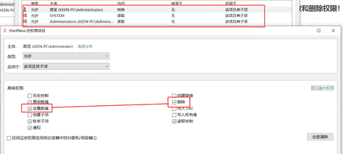 在shell文件夹上面右键->权限->高级->禁用继承->将已继承的权限转换为此对象的显示权限