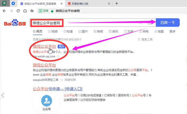 (1)在电脑浏览器上输入“微信公众平台官网”搜索打开微信公众平台网站
