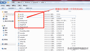 5、进入电脑C盘,依次打开Windows→System32→oobe→看看有没有文件夹"info",有就进入,没有就新建一个info文件夹,然后再看看info文件下有没有文件夹"backgrounds",有就进入,没有就新建一个。在文件夹"backgrounds"里面把自己想要的背景图片放进去,并把图片文件名称改成"backgroundDefault", 注意大小写,图片大小不能太大,图片格式转换成.jpg,文件大小控制在250KB以内(否则可能无法正常显示),务必将图片分辨率调整成当前显示器的分辨率,原先里面如果有图片的可以改成别的名称或者是删掉。总之,你自己想要的那个图必须是这个文件夹里的第一张。如图所示: