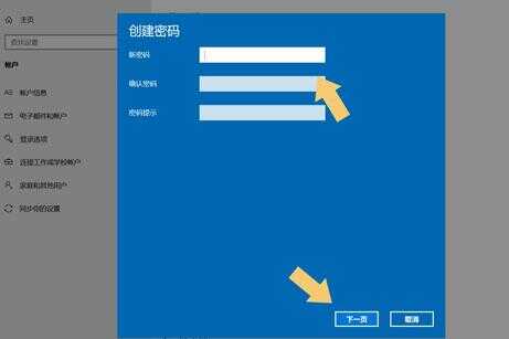 选择“添加”选项后,在弹出的界面里输入两遍需要设置的密码,密码提示问题可根据使用习惯进行设置,设置完成后点击“下一步”。如下图: