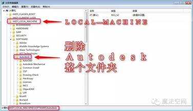 HKEY_LOCAL_MACHINE\Software\Autodesk删除左侧文件夹