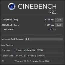 从基准测试来看,911X猎荒者无论是单核还是多核性能测试跑分表现都比较强劲,例如在CinebenchR23测试中,该机的多核得分是16701pts。以大家熟悉的8核16线程处理器作为参考,跑到80W以上的锐龙7 6800H,多核分数也就将近14000;如果是第11代酷睿i9 11900H,跑分则大概是13700左右。911X猎荒者的i9 12900H数据表现不错。