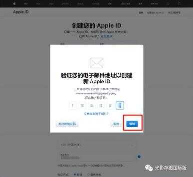 Apple会向我们填写的邮箱发送含有验证码的邮件,将验证码填入,点击“继续”
