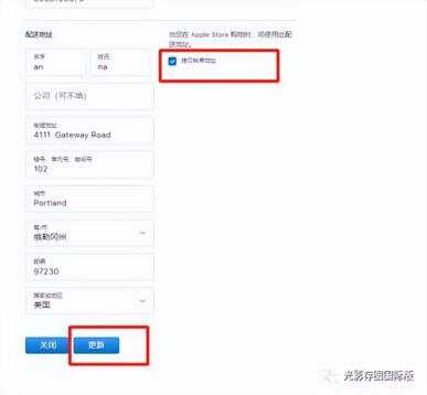 填写好账单寄送地址后,下拉配送地址,我们直接勾选“拷贝账单地址”,就不用再填写一次了,点击“更新”