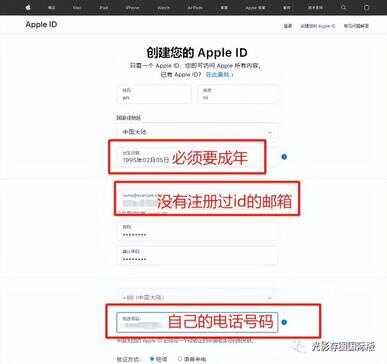 在浏览器中打开,我们就到了Apple ID的注册页面