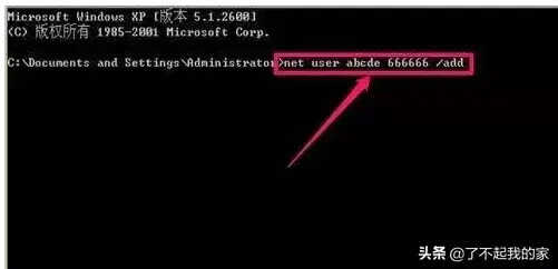 就会打开命令提示符窗口,在里面输入net user abcde 666666 /add命令,创建一个新帐户。用户名abcde与密码666666可以随便起,但不要自已为难自已。要易记。输入后,按Enter确定,会有成功提示。