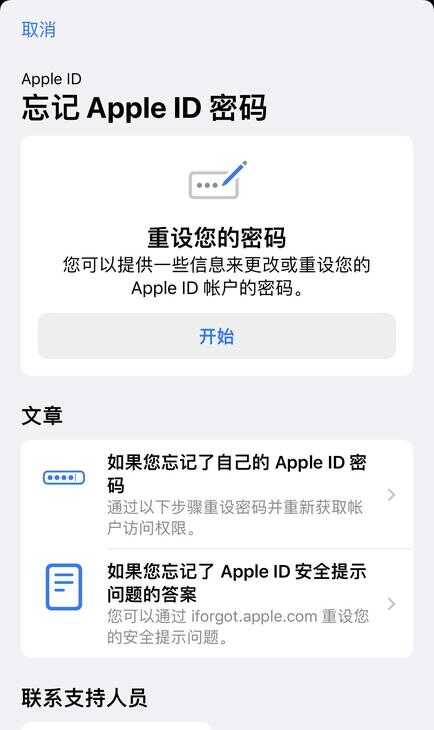 如果您自己的iPhone无法正常使用的话,可以选择使用受信任人的苹果设备,下载“支持”App,然后在“主题”中点击“密码与安全性”→点击“重设Apple ID密码”→“开始”→“其他Apple ID”→点击“下一步”按照屏幕操作完成设置。或者使用“查找我的iPhone”App,打开“查找”App→输入自己的Apple ID账户名→点击“忘记了Apple ID或密码”按照屏幕操作完成即可!
