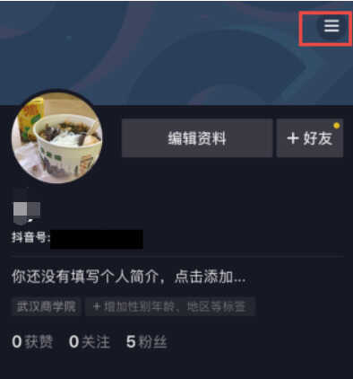 1.打开豆音APP的“我的界面”,单击左上角的三个;