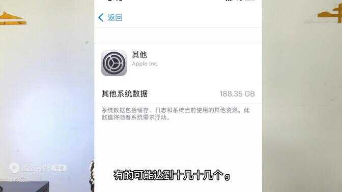 当然像 iOS系统所占用的空间是无法清理的,因为它是整个系统的文件,我们就要看这个系统数据选项,我们点击打开,打开以后大家可以看一下,其他系统数据占了188.35g但如果这个系统数据垃圾占用比较大的情况下,会导致手机变得非常的卡,甚至无法使用。