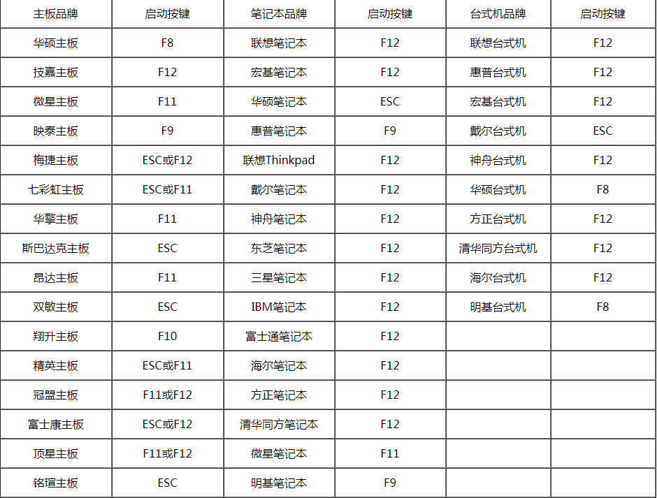 关于这个快捷键的我们这个在安装系统的叫安装系统教程里面的第一步就有这个有一个列表列表里面可以看出这个电脑