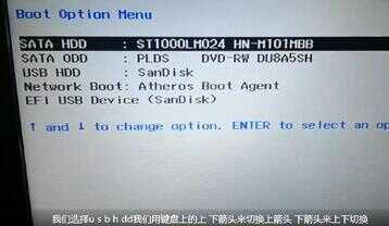 我们选择u s b h dd我们用键盘上的上下箭头来切换上箭头下箭头来上下切换