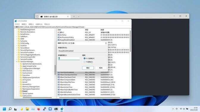 点击Power 后在右侧双击打开“AwayModeEnabled”将数值1改成0,然后重启电脑,再试试睡眠