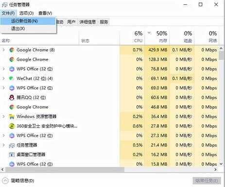 2.请查看explorer.exe是否存在问题。开了电脑,电脑虽然黑屏,但实际上已进入系统桌面,只是没有显示,我们按下键盘“Ctrl+Alt”+Del",选择TaskManager。开启任务管理器界面,点击页面左上角的“文件”,选择“运行新任务”。