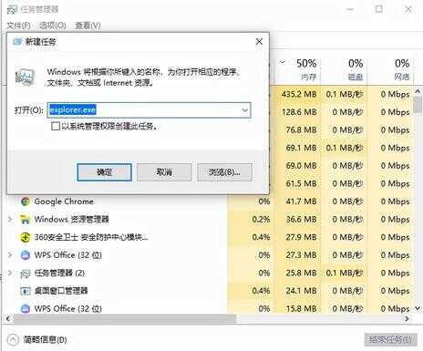 将命令"explorer.exe"输入运行窗口,然后单击OK按钮。这时计算机又恢复正常。