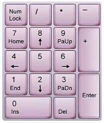 当Num Lock(数字键盘锁定键)关闭时,数字输入功能消失,带字母的按键功能变为编辑键功能。2、4、6、8键可用作方向键功能。Del则为删除键(后删键)其他按键同理。