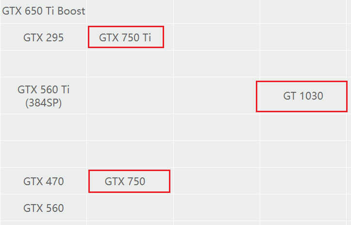 就算频率差异比较明显,依靠更多的流处理器优势,GTX 750Ti的性能也会强于GT 1030,至于强多少,就要看测试数据了,当然比较简单的办法就算看显卡天梯榜单,在最新的榜单上面,GTX 750Ti明显高于GT 1030。