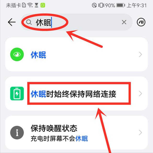 我们打开手机设置,在顶部的搜索栏中输入:休眠
