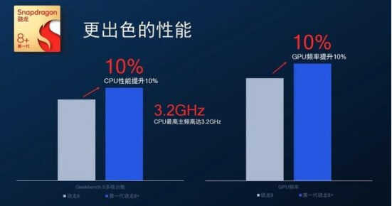 为什么在旗舰手机中骁龙8+那么受欢迎呢?骁龙8+是基于骁龙8打造的,虽然GPU部分仍然为Adreno730核心,但是频率却提升至900MHz。并且X2大核心频率从3.0MHz提升到3.2MHz,采用的还是台积电4nm工艺制程。因此具体的能效比提升到了30%,CPU和GPU较骁龙8相比都有10%的性能增幅。同等性能表现下,骁龙8+的GPU和CPU功耗降低均高达30%,整体功耗也降低了15%。