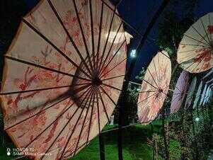 第二组照片依然是在夜间拍摄的,虽然光源的来源比较单一,但是在照片中的光源表现却比较均衡。尤其是多个折扇组合而成的长廊,从近到远处,每把扇子的颜色也都十分鲜艳,同时也非常容易辨认出来。