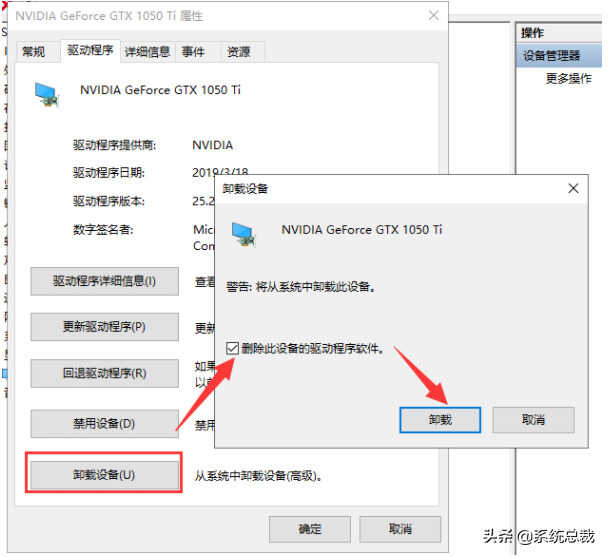 3.点一下下面的卸载机器设备,启用清除该专用设备的驱动软件勾选框,随后点一下卸载。