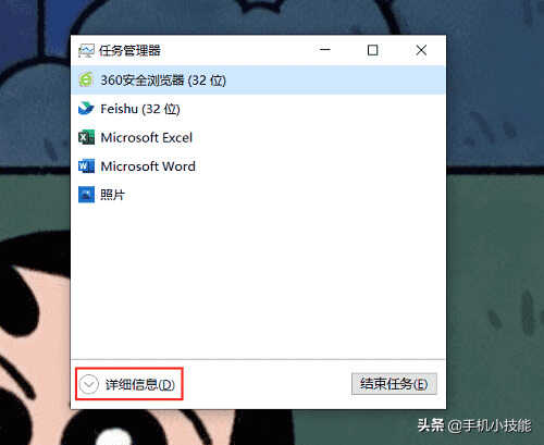 第二步:为了方便可以点击左下角的详细信息,进去查看完整的信息。
