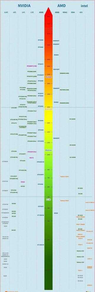 上一篇文章讲了CPU的天梯图,这次轮到显卡,这个电脑的又一“核心”部件,首先,先科普一下:显卡的主要作用是将CPU提供的指令和数据进行相应的处理变成显示器能够接受的文字或图象后显示出来。一般分为集成显卡、独立显卡、核芯显卡三种。