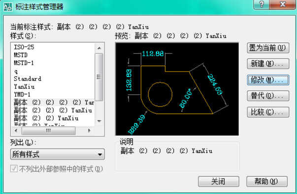 3、再点击第一步骤图中的【置为当前】按钮。要注意的是,调整尺寸大小比例不用一个个去修改,使用标准样式里的全局比例缩放即可,完成标准尺寸大小的调整,结果如下图所示: