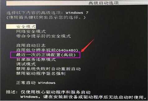 3、 如果不行的话,那就重启电脑,通过F8键选择最近一次的正确配置(高级)