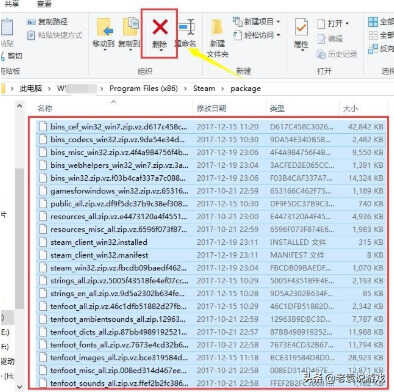 首先我们可以先找到steam所在的文件件,夹,找到package文件夹,这个文件夹里全是steam每一次升级后的文件,所以我们将其清除掉,steam就得重新升级,升级之后问题就可以解决了。