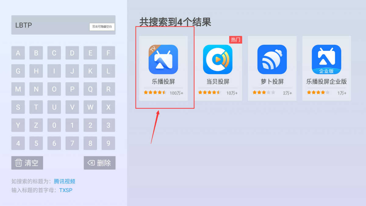 1、首先我们要保证投影设备是跟当贝X3投影仪在同一个wifi的情况下,然后再投影仪中下载乐播投屏