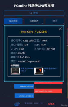 当你鼠标移动到某款CPU上时,它会自动弹出一个半透明窗,同时会显示这款CPU相关的全部参数、包括工艺、频率、核心、缓存、TDP等等等等有关这款CPU的参数,甚至还会推荐一些目前采用这款CPU的笔记本,省去你去查找的时间。