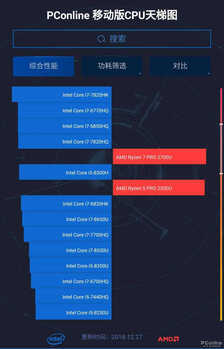 和桌面版CPU天梯图一样,这次移动版CPU天梯图依旧采用深邃的蓝色、红/蓝分明的A/I阵营、酷炫的滚动条、鲜明的价格区分,是不是感觉很清切呢。