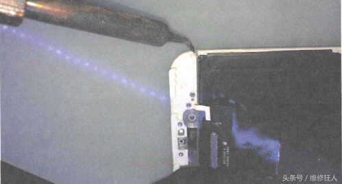一般液晶靠排线这一端的拐角处都有静电连接点,更换完偏光片后,一定要做静电处理,用导电银漆把偏光片的顶部和静电点连接上就可以了,如图所示。如果不做静电处理,屏幕可能会出现触摸不良或者其他问题。