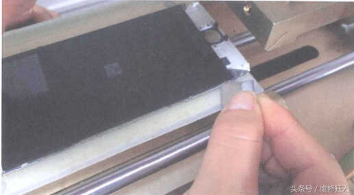玻璃盖板分离时,分离机设置成80℃,然后把屏幕排线朝向自己,轻放到分离机上面,待分离机温度加热到80℃时、用手把边框掰松,拉掉,如图所示。