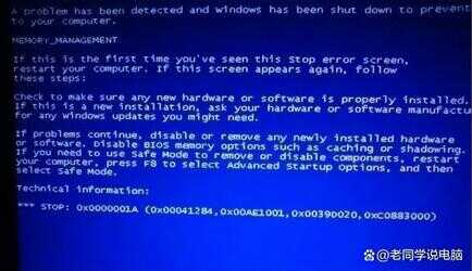 2.蓝屏代码:0x0000001A,可能是内存条问题,可以尝试重新插拔内存条,用橡皮清理内存金手指部分,清理灰尘。或尝试更换内存条,重启。