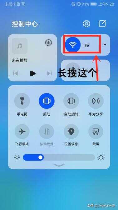 在手机上方直接往下滑动,然后找到【wifi】开关,长按这个【wifi】