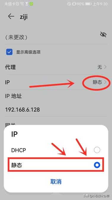 此时我们就能进入到【wifi】修改设置界面,在这边我们直接勾选【显示高级选项】,出现高级选项之后,点击IP然后选择【静态】按钮
