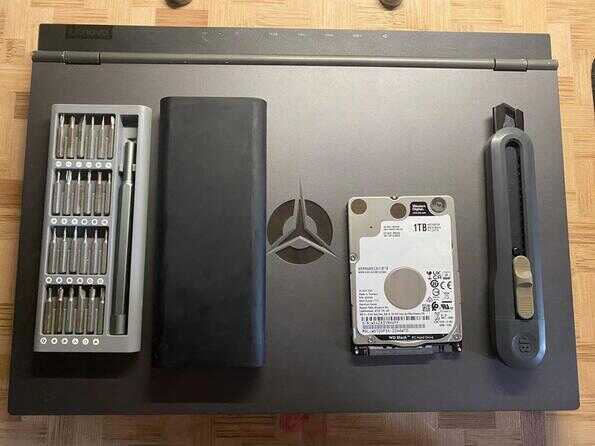 本来打算给舍友加游戏盘的,但后面出了点小问题,所以顺便拍教程了.我准备的是便携式的磁吸工具套装,网上还蛮多的,建议购买电动的省力些,建议准备一个翘盘,专门翘电脑的,没有(也可以选择水卡,问题不大,再不行可以用指甲,只要你不疼,切记不要用刀,翘,会把底盘按扣挂掉)