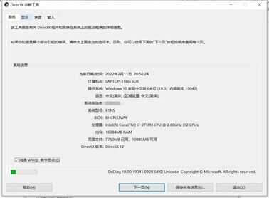 另一种查看方式,通过按键“Win+R”在运行中输入“dxdiag”打开DirectX诊断工具,在对话框中可以更详细的查看电脑配置,包含BIOS版本、处理器、内存、操作系统版本等等。