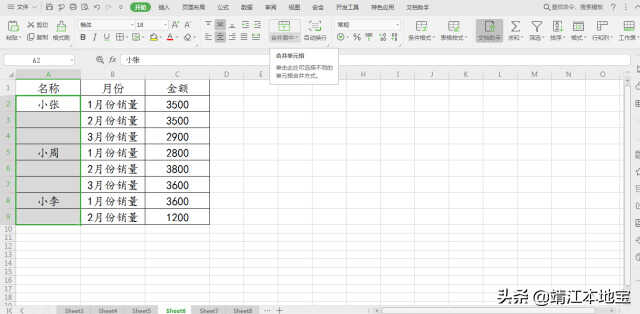 一、合并的单元格快速恢复原样