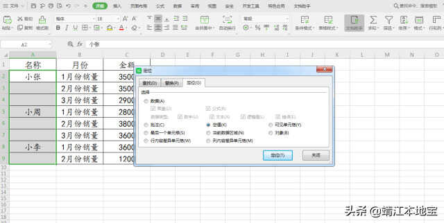 然后按ctrl+E键,在定位选项框选择空值。
