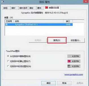 ALPS品牌的触控板禁用方法:单击“其他”选项,取消“使用触控板和PS/2鼠标”前的 复选框,单击确定即可。如下图所示: