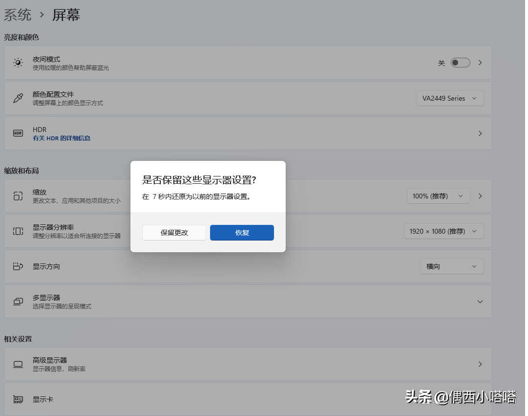 7、更新完毕显卡驱动,回到桌面,空白地方点击鼠标右键,选择显示设置,重新选择系统带推荐字样的“显示器分辨率”即可,重新配置后,会弹出“是否保留这些显示器设置”,选择点击“保留更改”如下图,恭喜你已经成功更新并设置好你的分辨率,电脑两侧的黑屏已经没了。