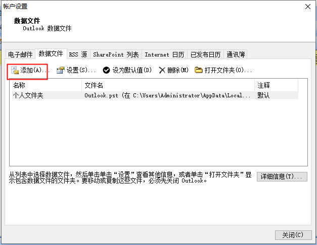 此故障为outlook数据文件过大造成的,此时我们需要重新建立一个新的数据文件,将新的邮件收取到这个新的收件箱便可解决。同样选择“工具”下的“账户设置”,选择数据文件,点添加按提示新建一个文件即可。