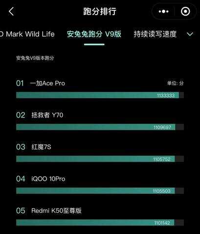 上述5款手机排在了第一至第五的位置,且安兔兔跑分均超过了110万分。大家可以根据自己的需求来选择,追求全能配置预算充足可以考虑iQOO10Pro、预算不足可以考虑RedmiK50至尊版;追求极致游戏体验能够接受厚重的机身可以考虑红魔7S;追求长续航但预算不足可以考虑联想Y70;追求极速充电且对拍照没有高要求可以考虑一加AcePro。
