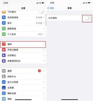 2、在手机的“设置”,点击“通知”,关闭“允许通知”后的开关,屏蔽推送。